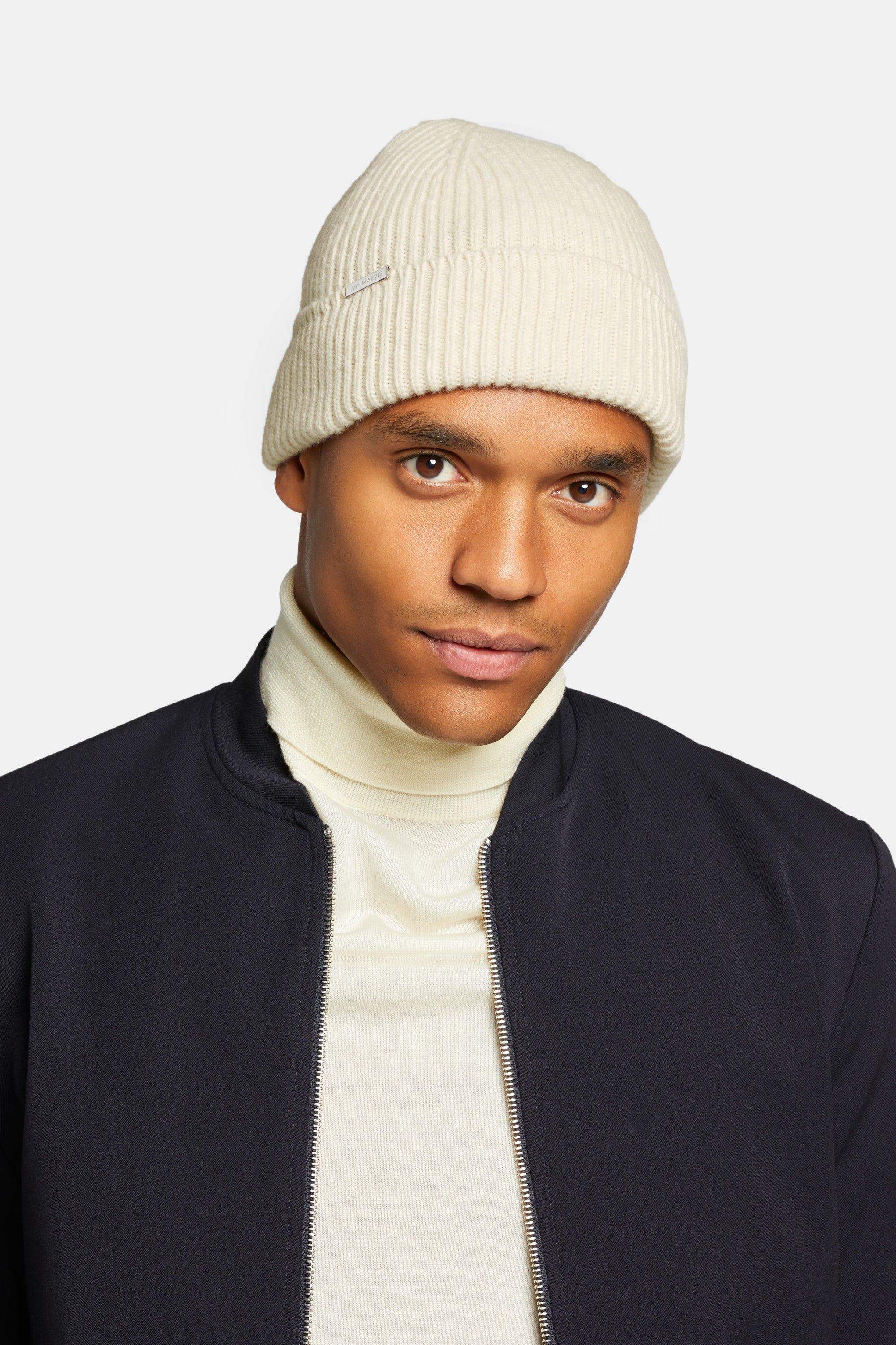 MR MARVIS’ off white beanies are available in a limited production run.