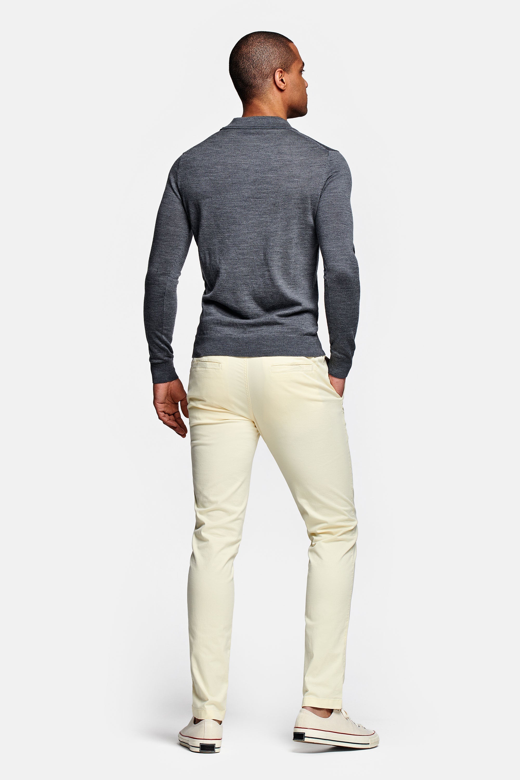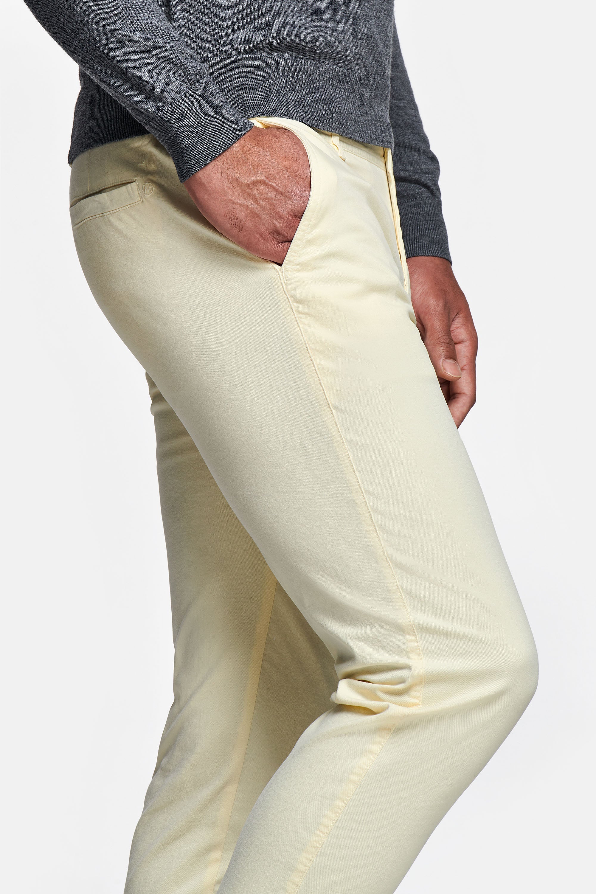Meet The Limoncellos long: MR MARVIS' light yellow stretch cotton men's trousers. With The Longs, you are ready for any season.