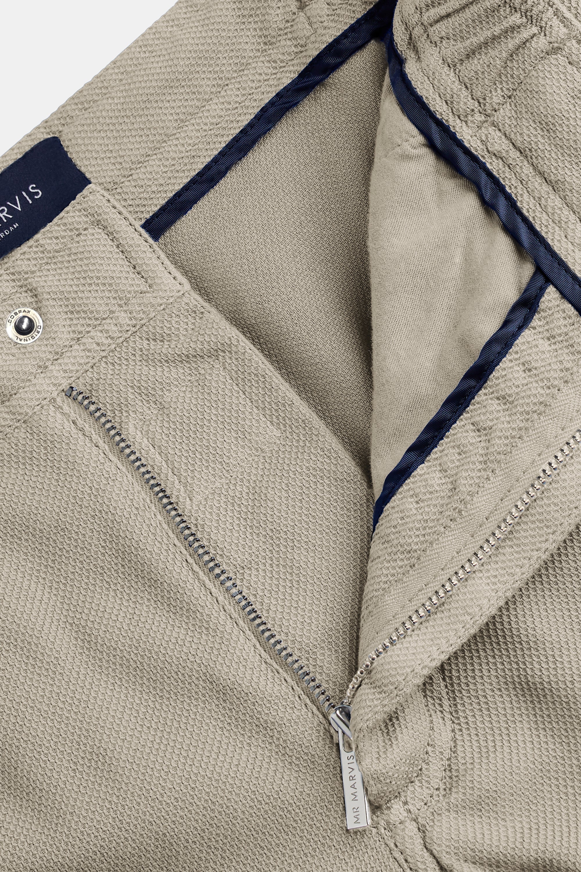 The Baristas - MR MARVIS' mid brown piqué men's shorts, made out of airy 100% organic cotton fabric with a textured waffle look - will serve you a hot & steamy start of the day. Match your outfit with your personality: whether it's straightforward or complex, strong or sweet.