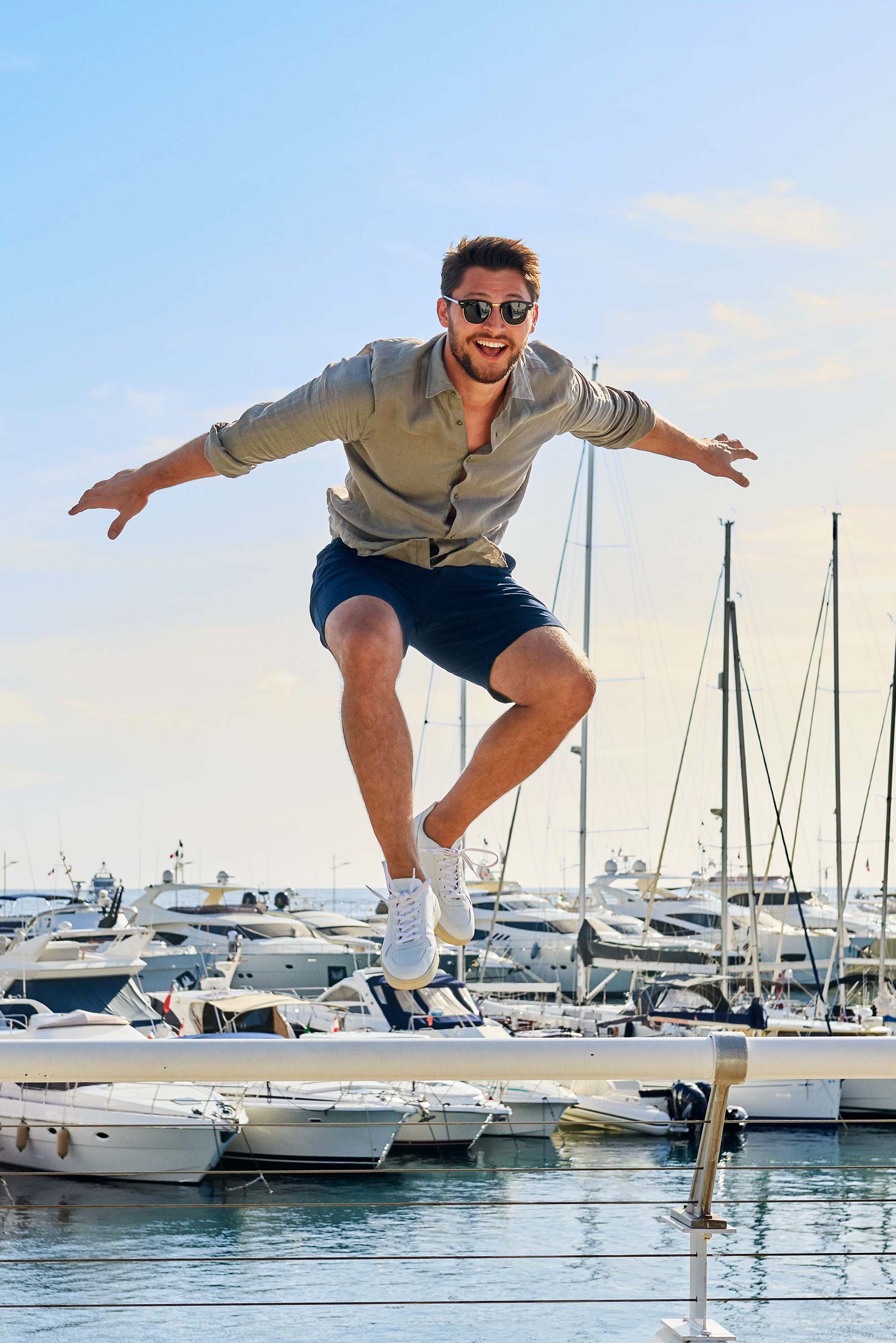 When you put on the Cosmics, astronomy class from back at high school won’t be on your mind. And most certainly won’t limit the plans you have. The Cosmics - MR MARVIS' dark blue stretch cotton men's shorts - enable you to travel to a galaxy forty thousand million light years away. Don’t forget to send a postcard. Be cosmic.